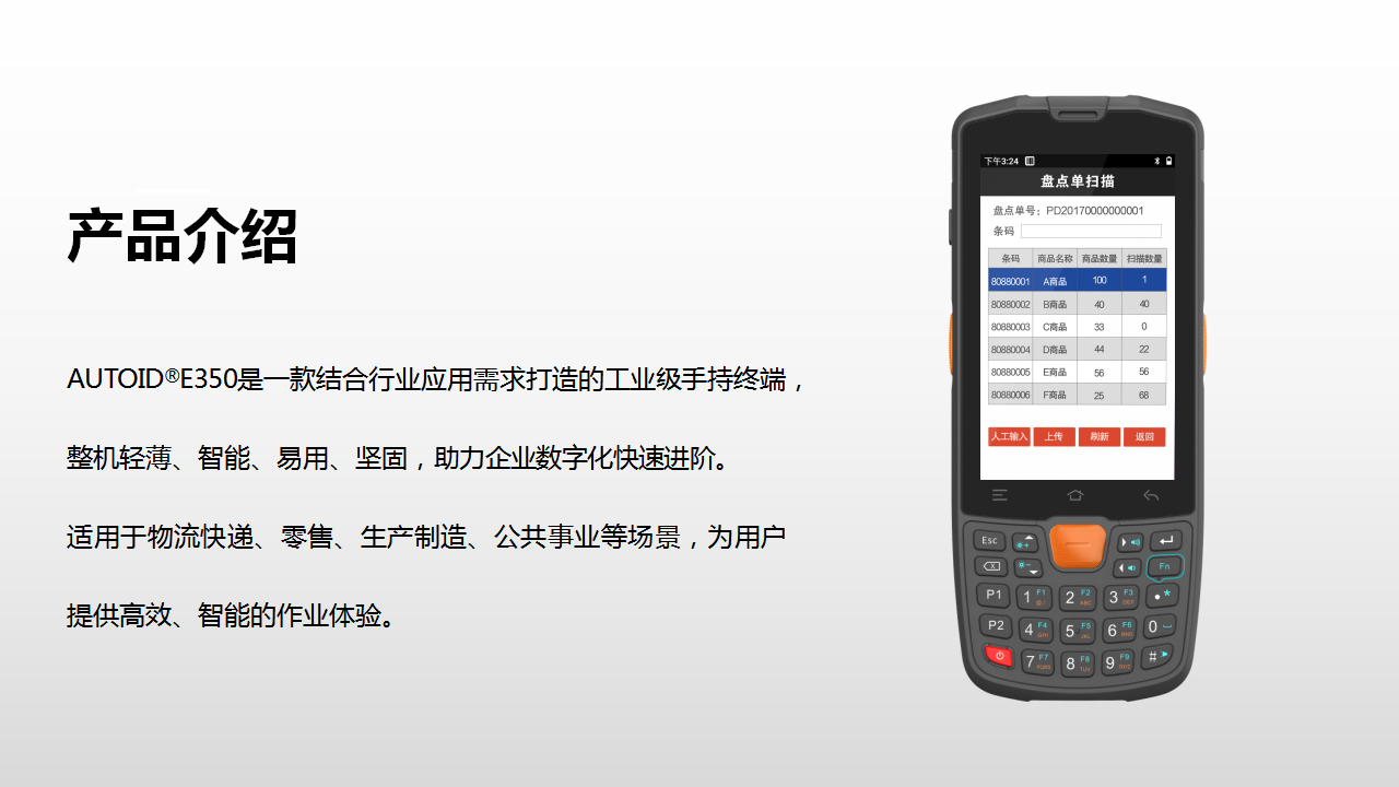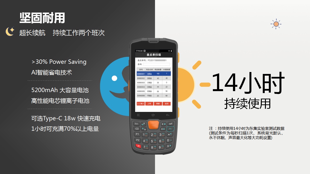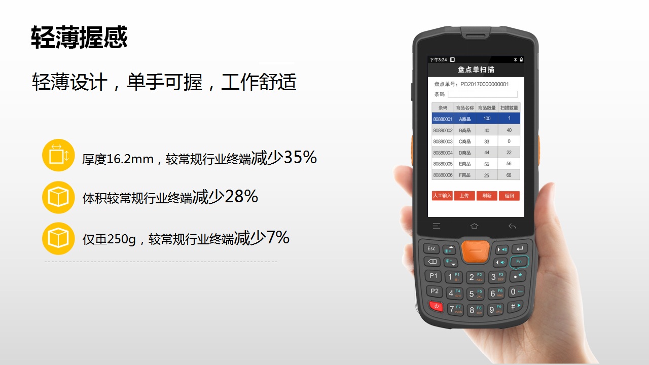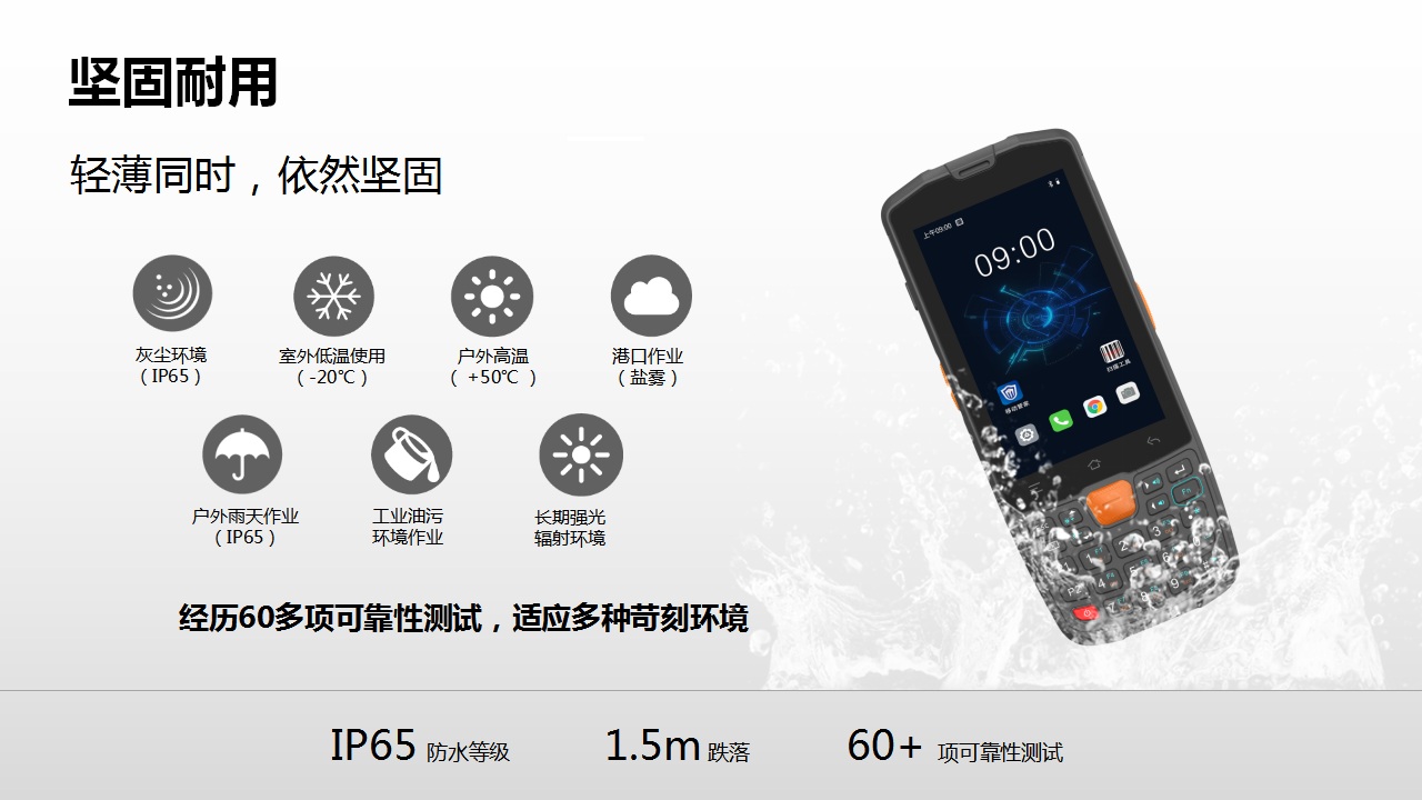 显示屏幕:4英寸工业级耐低温IPS显示屏,电容式触摸,支持戴手套/带水触摸
