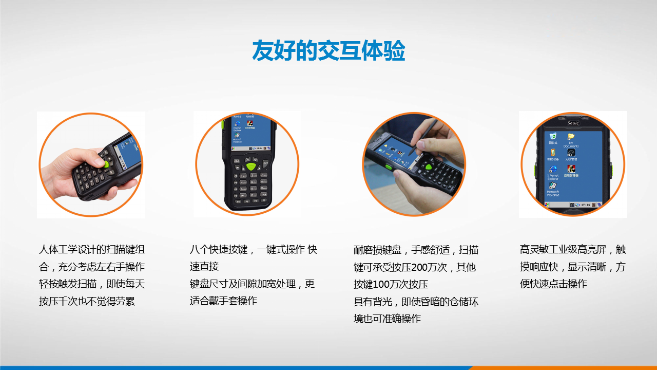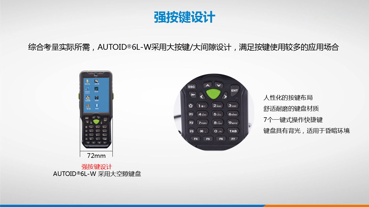 显示屏幕:3.5英寸工业级彩色液晶显示屏,65536色,240(W)×320(L)(QVGA)
